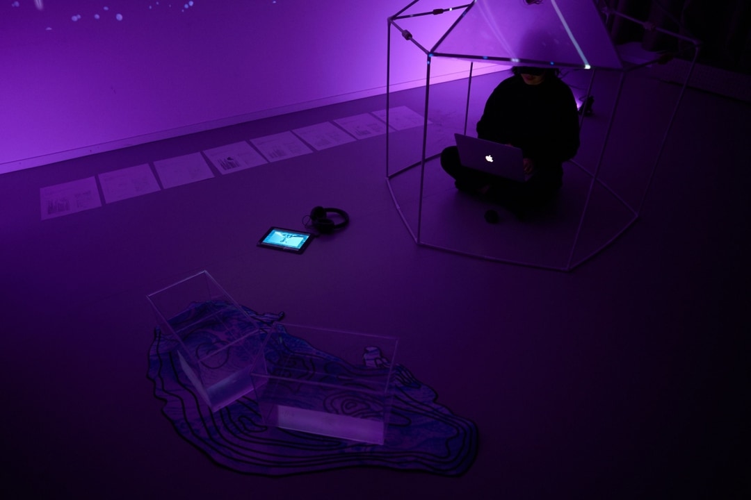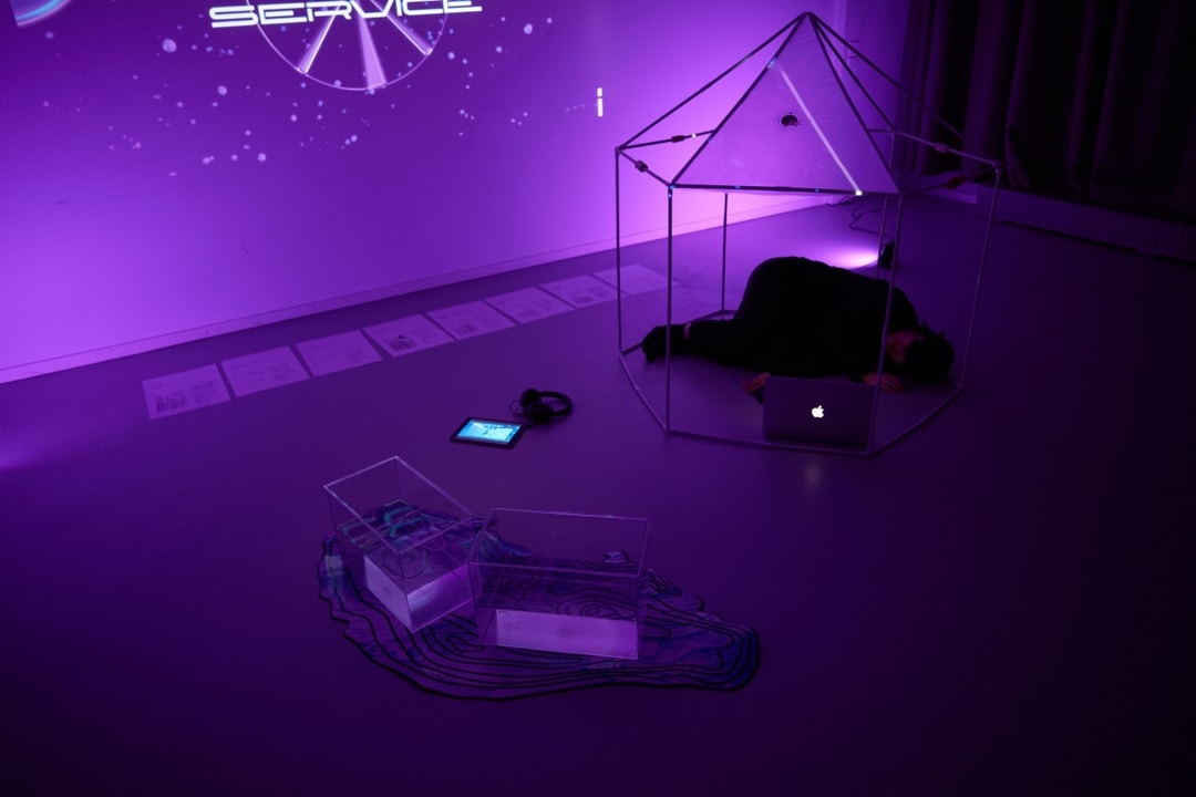 공간 설치에는 플랫폼 회사 Circle Time의 웹 사이트와 함께 사무실 공간, fake CV, Data Lake 및 사운드가 함께 전시됩니다.